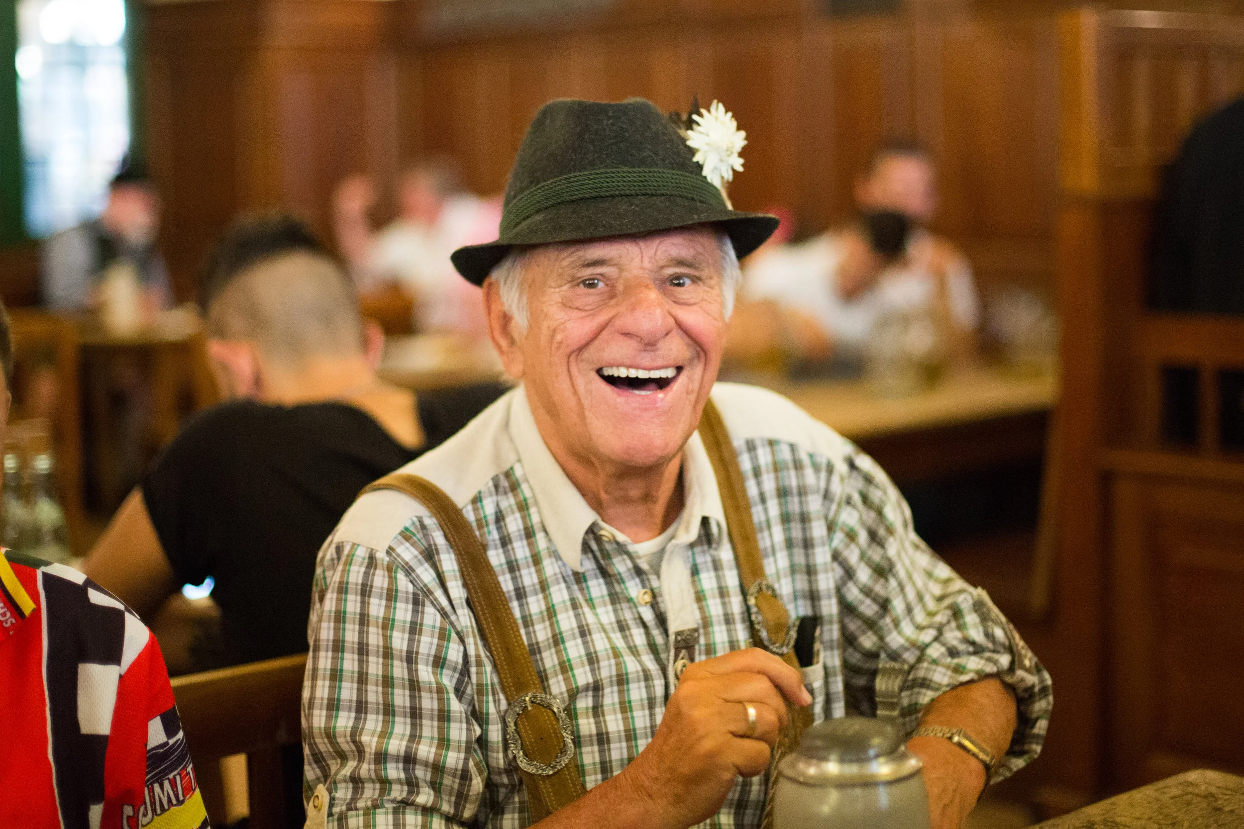 This photo is my favorite from Germany! This guy looks so happy and I love his lederhosen and metal stein at the Hofbrauhaus.